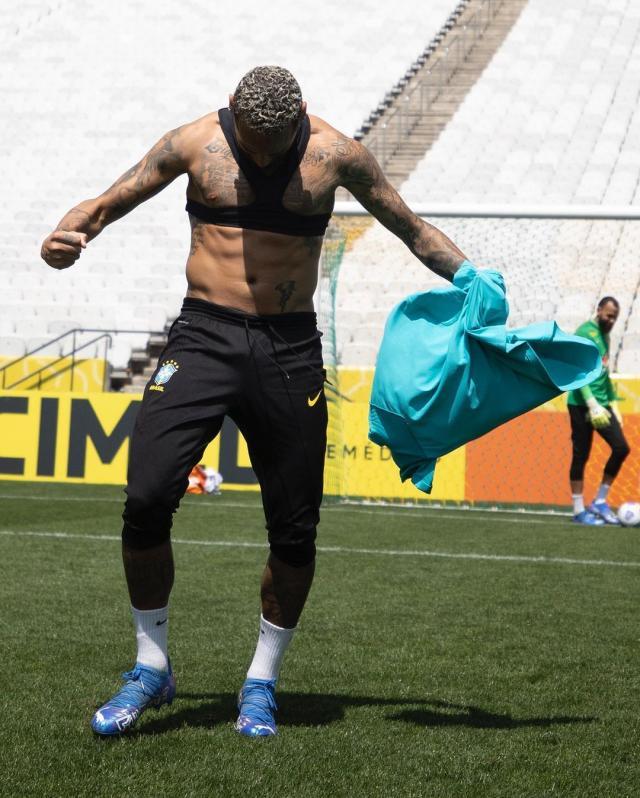 对阿根廷队战前训练中,内马尔特意脱掉球衣,以显示自己腹部的肌肉。照片发到网上,巴黎圣日耳曼队友姆巴佩都为他点赞。对阿根廷队一战因故取消,对秘鲁一战进球后,内马尔掀起自己的球衣,意在向球迷们展示自己腹部的肌肉,证明自己不胖。